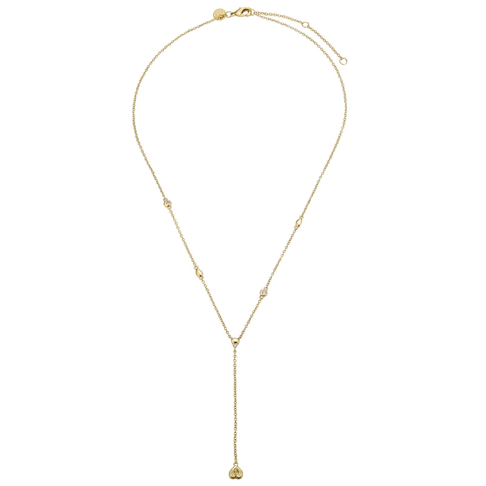 The Anthurium Y-drop necklace features our signature Anthurium pua, accented with delicate pebble details and a subtle touch of sparkle.